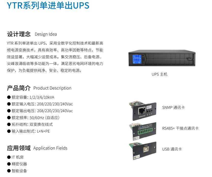YTR 系列單(dān)進(jìn)單(dān)出UPS (1-10kVA)立式