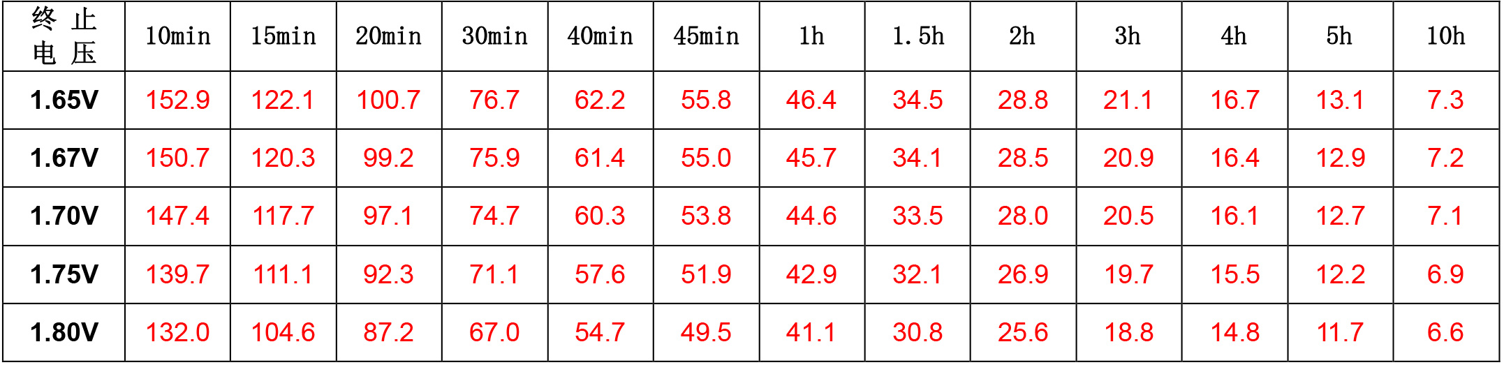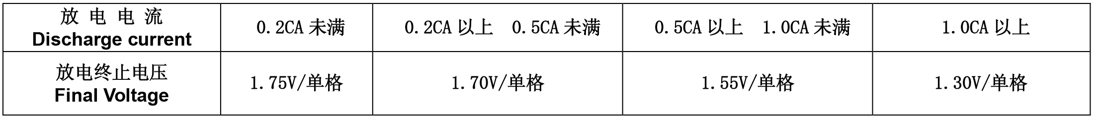 放電電流及放電終止電壓: