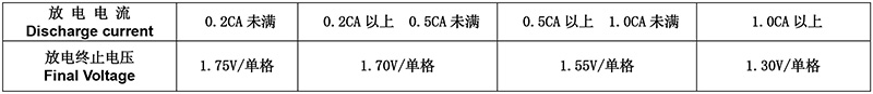 放電電流及放電終止電壓: